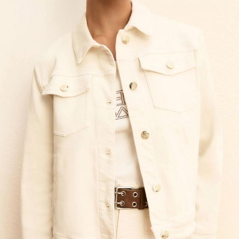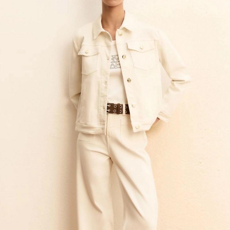 Tasche applicate al petto e a filetto lungo i fianchi.