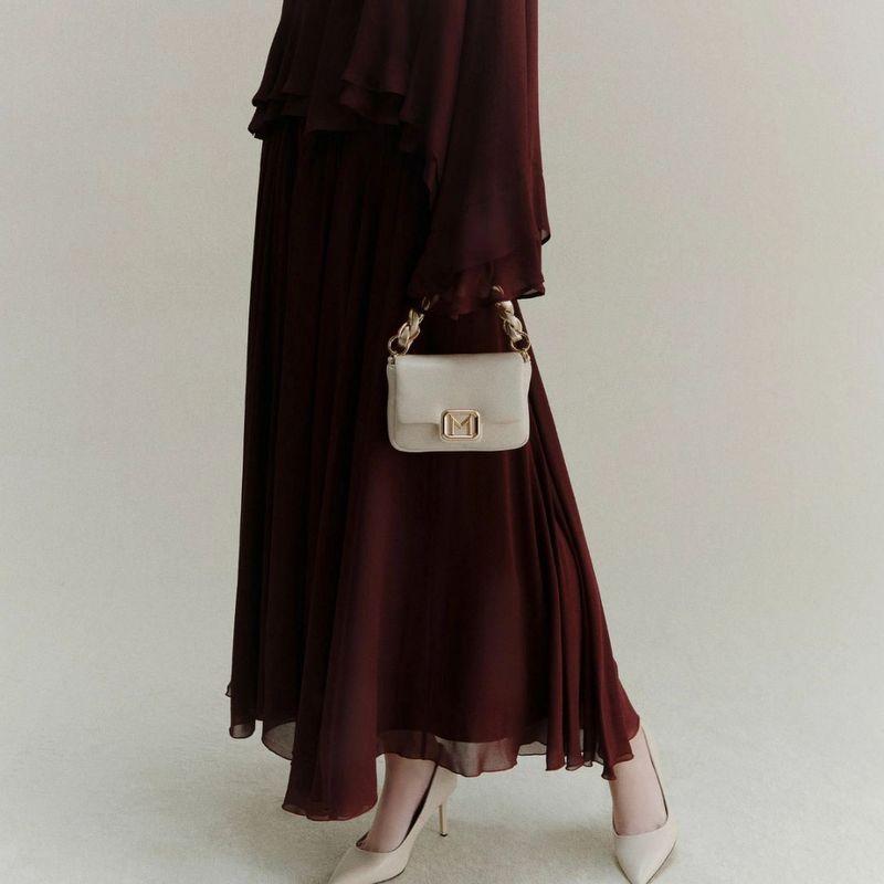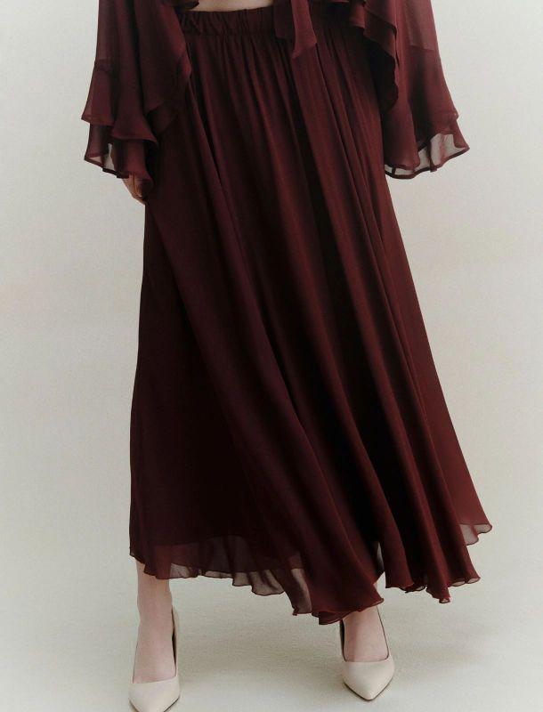 Svasatura ampia e fluida al fondo con motivo asimmetrico.