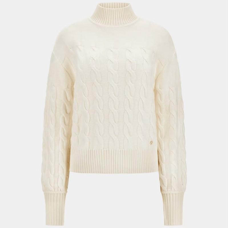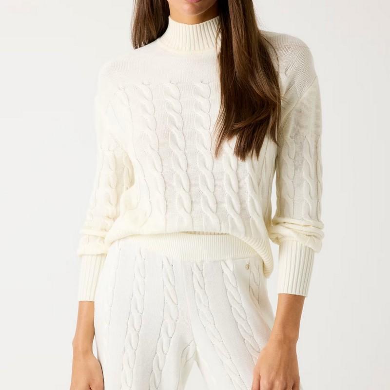 Collo a lupetto, polsini e orlo in maglia a costine.