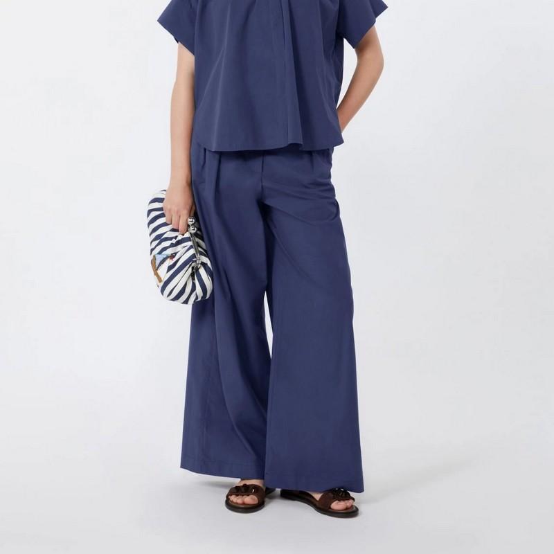Pantalone ampio blu in popeline di cotone Weekend Max Mara quantità