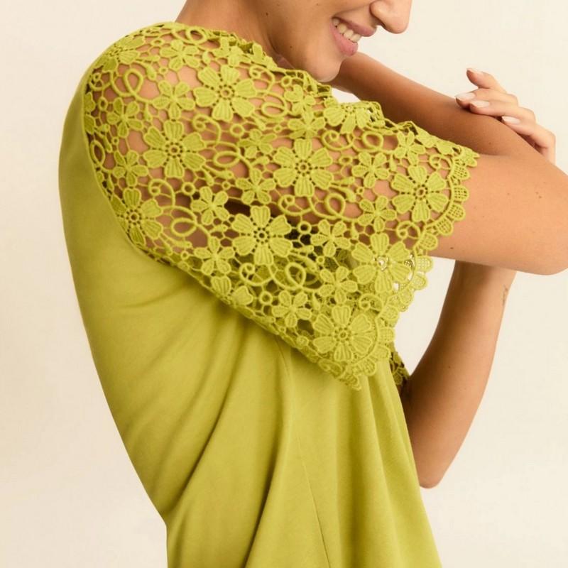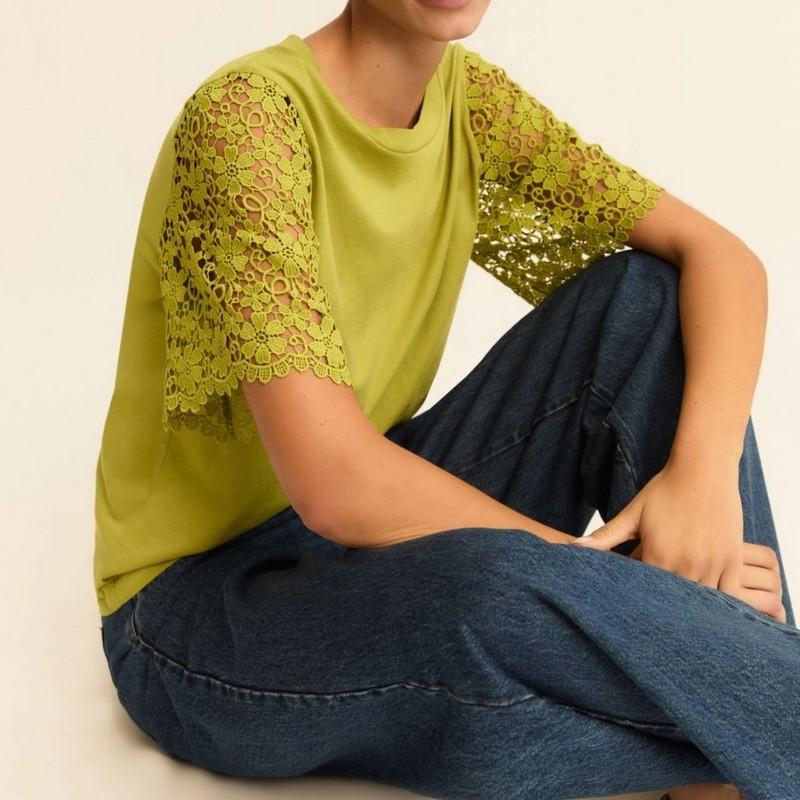 Maniche corte in pizzo macramè.