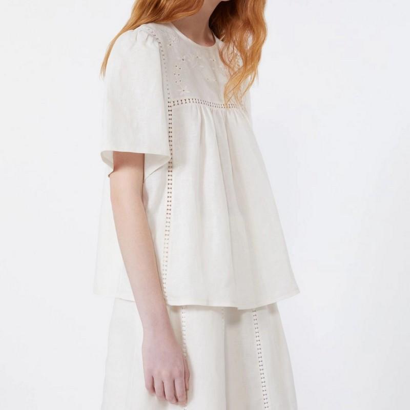 Top ecru in tela di lino e jersey stretch Weekend Max Mara quantità